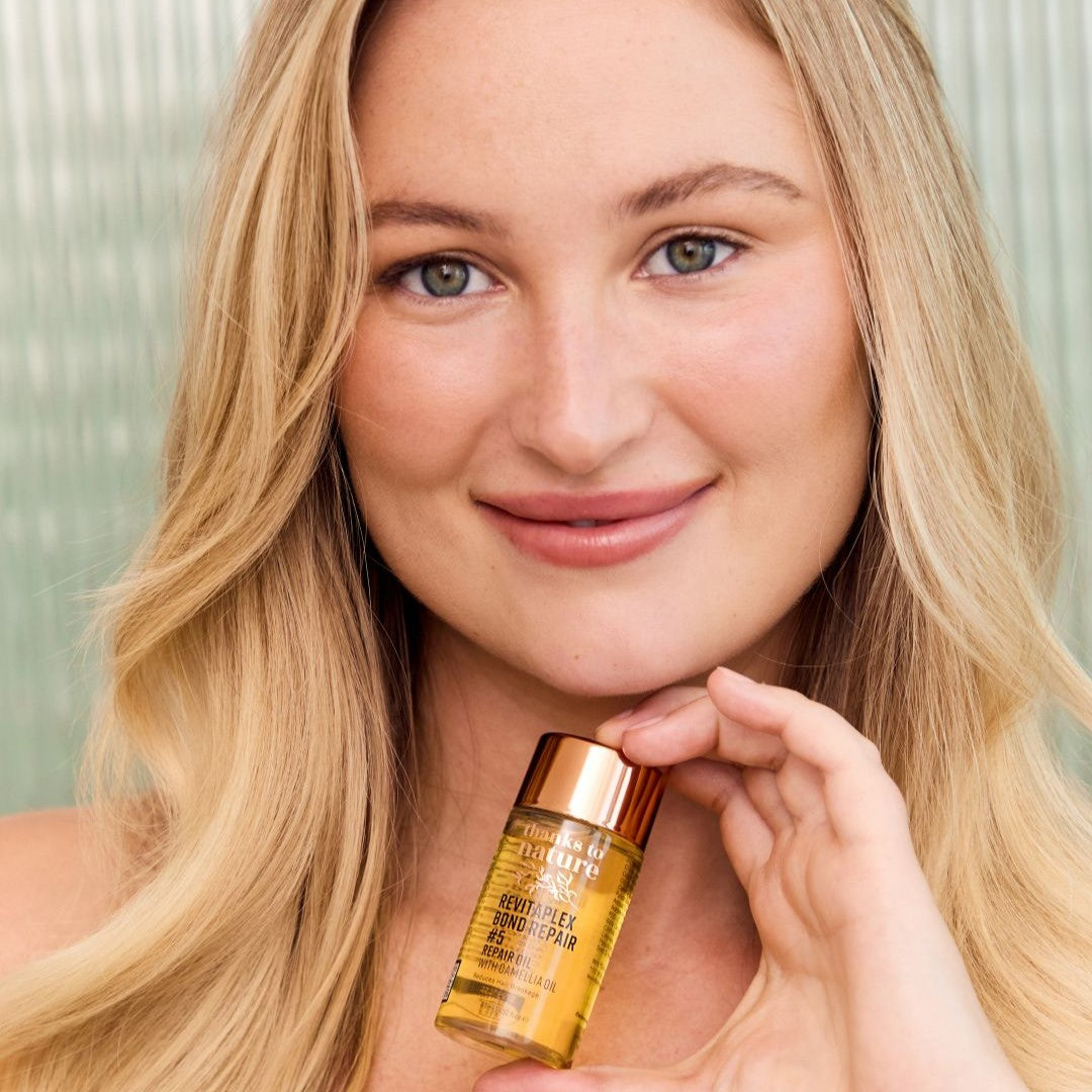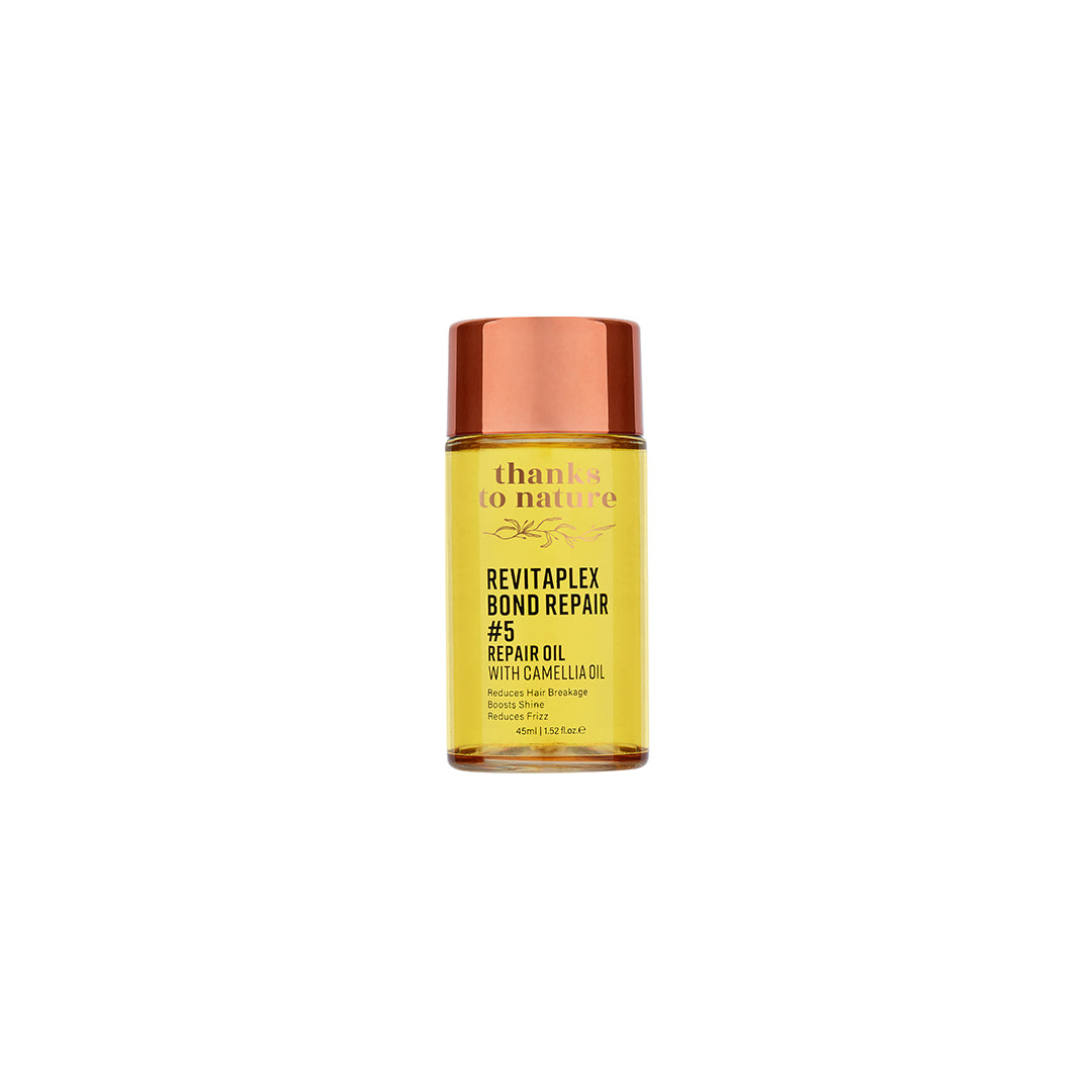 thanks to nature RevitaPlex Bond Repair #5 Repair Oil is designed to repair and treat damage by reducing hair breakage and strengthening each strand. It finishes hair with lasting nourishment, frizz control and brilliant shine. Innovative bond building technology restores hair's natural appearance and texture, achieving healthier hair with every use. Delicately fragranced to leave hair smelling beautiful.