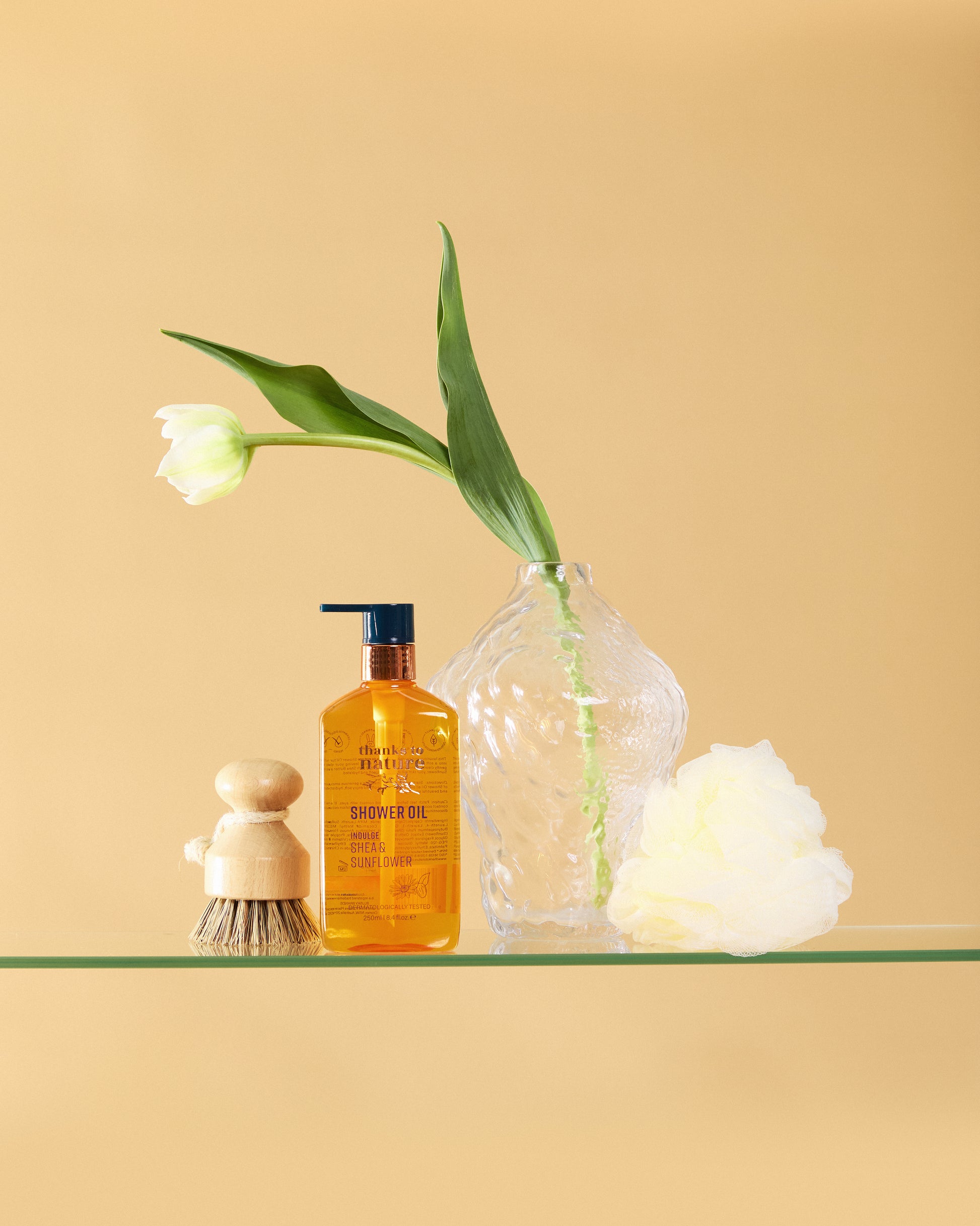 Shower Oil: Apply to wet skin, work into a lather and rinse.